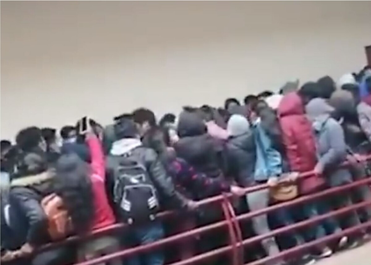 En video quedó registrado el momento cuando la baranda se rompió y varios estudiantes cayeron desde el cuarto piso. Ocurrió en una universidad de Bolivia. Al menos siete personas murieron a.