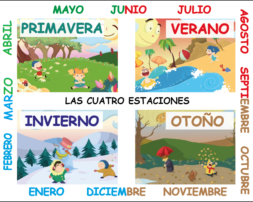 por PreparaNiños 1 de mayo de 2018. Cada año, nuestro planeta experimenta lo que llamamos, las cuatro estaciones. Son cuatro períodos en que se divide el año: primavera, verano, otoño e invierno. Cada una de las estaciones, dura tres meses y tiene clima diferente. Aquí te explicamos las estaciones del año para los niños: Cuáles son.