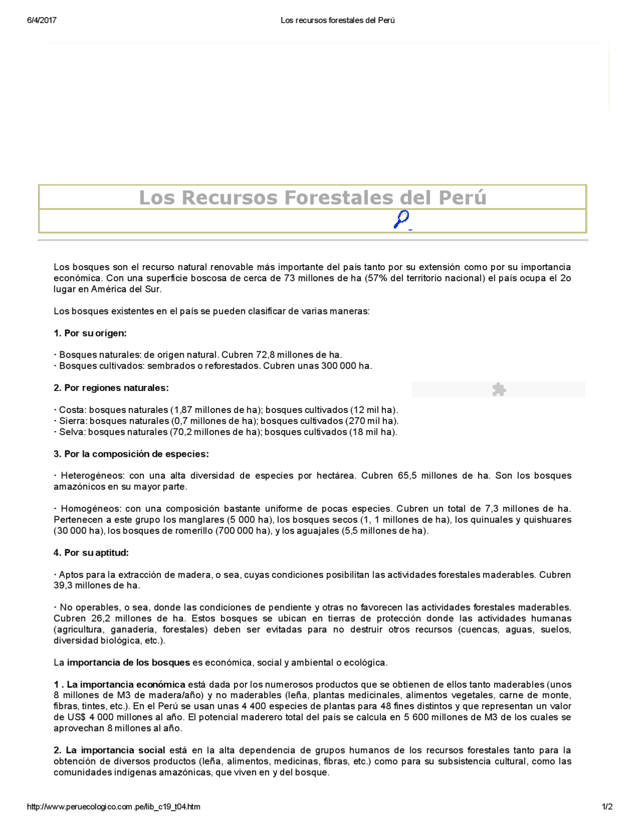 Los recursos forestales Apuntes de Ciencias de la Tierra y del Medio Ambiente Docsity