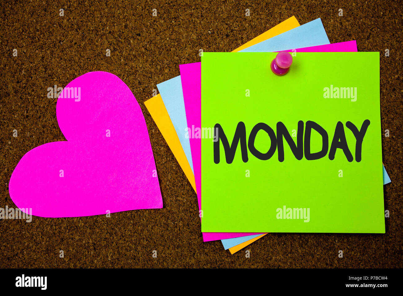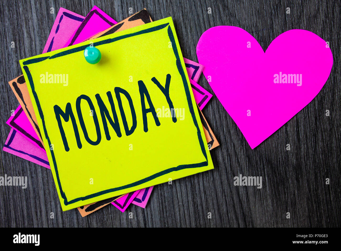 Escritura de texto escrito el lunes. Concepto Significado del primer día de la semana a fin de