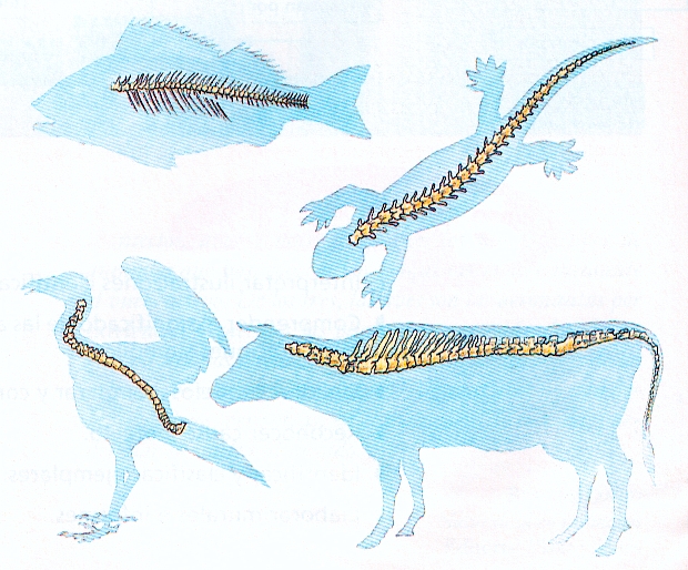 Todos los reptiles son animales vertebrados, es decir, su cuerpo está recorrido por un esqueleto interno conocido como columna vertebral. Esta columna está formada por una serie de huesos anchos y planos que están fuertemente unidos por los discos intervertebrales, unas "almohadillas" formadas por cartílago.