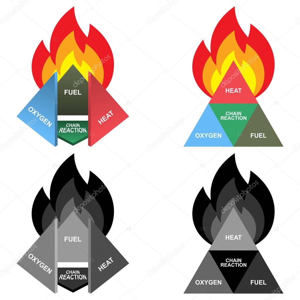 Tetraedro de fuego o diamante de fuego oxígeno, calor, combustible y reacción en cadena 2022