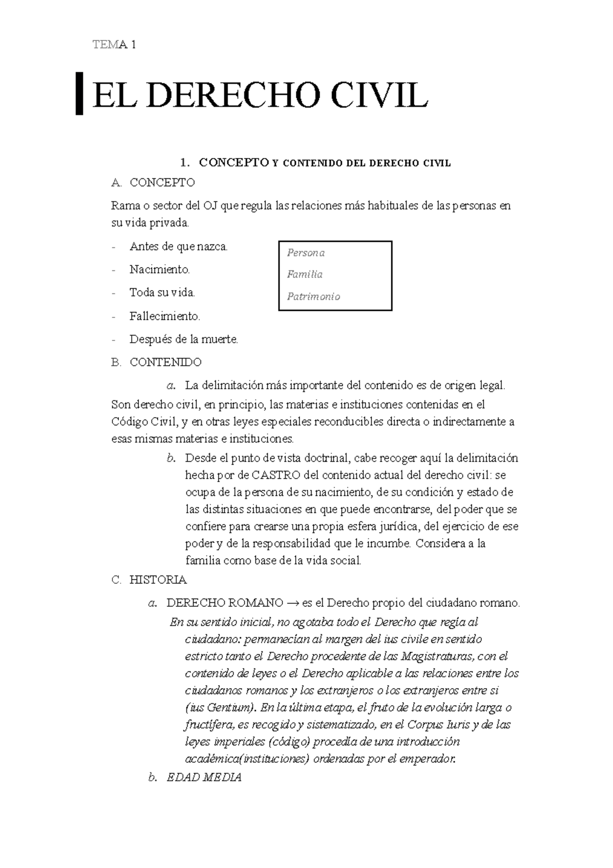 Tema 1. El derecho civil TEMA 1 EL DERECHO CIVIL 1. CONCEPTO Y CONTENIDO DEL DERECHO CIVIL A