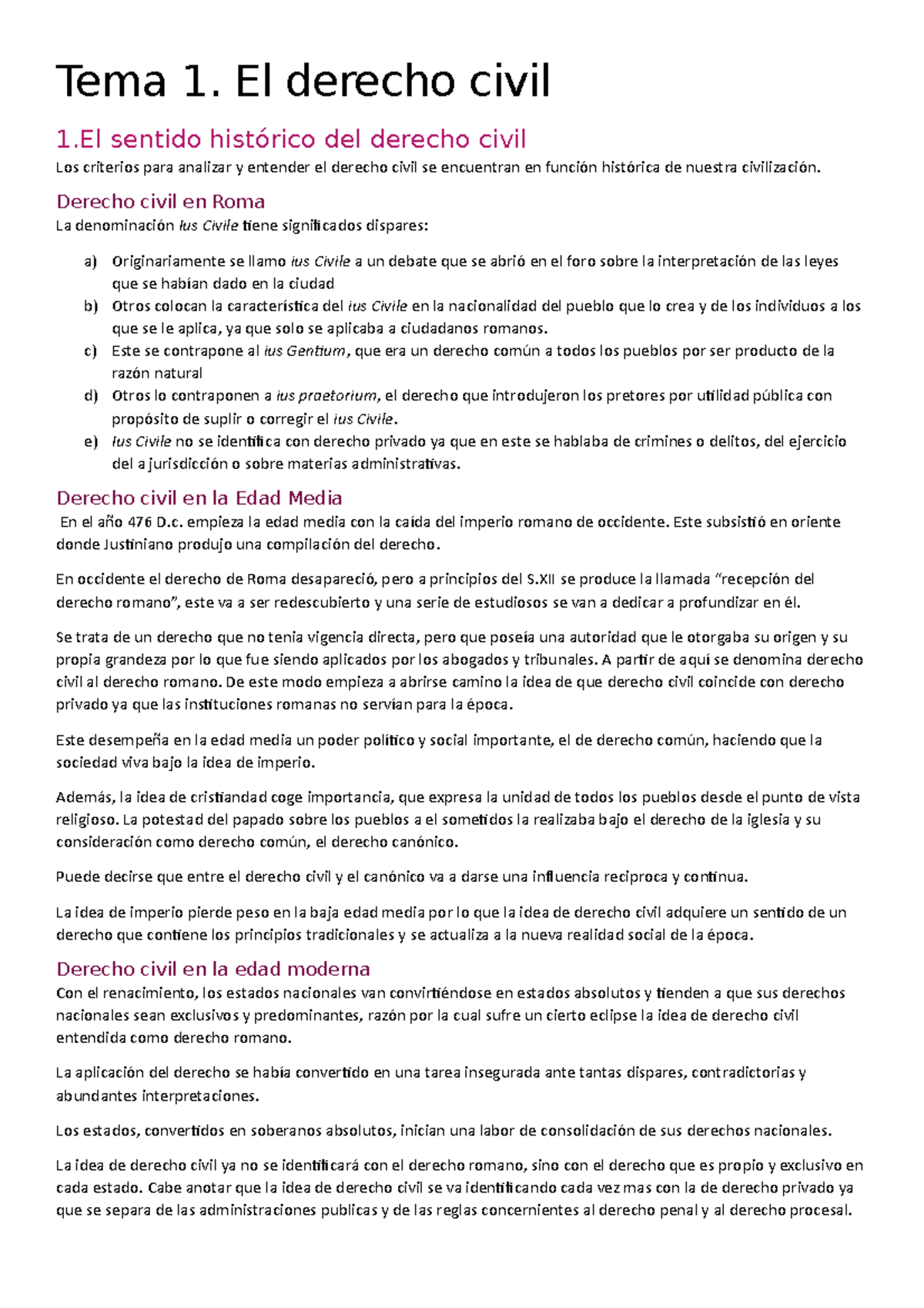Tema 1. derecho civil Apuntes 1 Tema 1. El derecho civil 1 sentido histórico del derecho