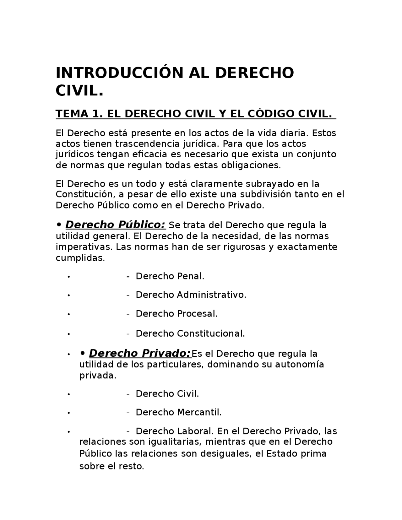 INTRODUCCION AL DERECHO CIVIL Apuntes de Derecho Civil Docsity