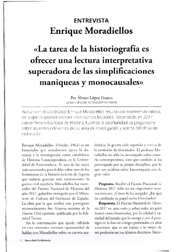 (PDF) Entrevista en la revista Descubrir la Historia, número 16, oct 2018.pdf Enrique