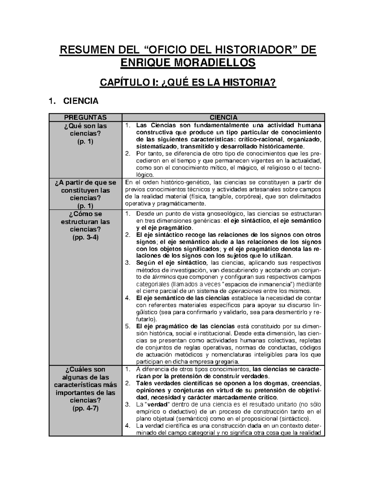 Organizador de ¿Que Es La Historia? Enrique Moradiellos PDF Conocimiento Science
