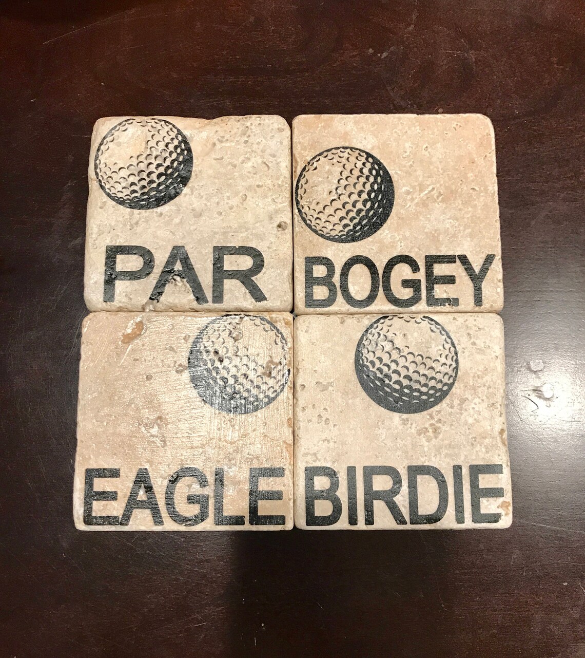 Golf Par Bogey Eagle Birdie Natural Stone Coaster Drink Etsy