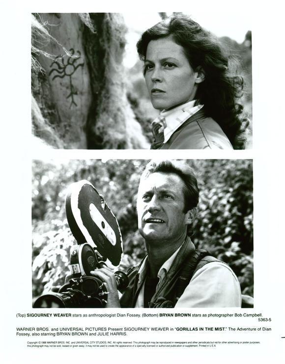 Gorilas en la niebla es una película dirigida por Michael Apted con Sigourney Weaver, Bryan Brown. Sinopsis : Una mujer de Kentucky que responde al nombre de Dian Fossey (Sigourney Weaver) y.