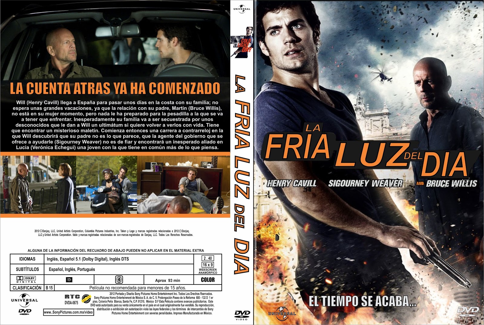 La fría luz del día. Will (Henry Cavill) llega a España para pasar unos días en la costa con su familia; no espera unas grandes vacaciones, ya que la relación con su padre, Martin (Bruce Willis), no está en su mujer momento, pero nada le ha preparado para la pesadilla a la que se va a tener que enfrentar.Inesperadamente su familia va a ser secuestrada por unos desconocidos que le dan a.