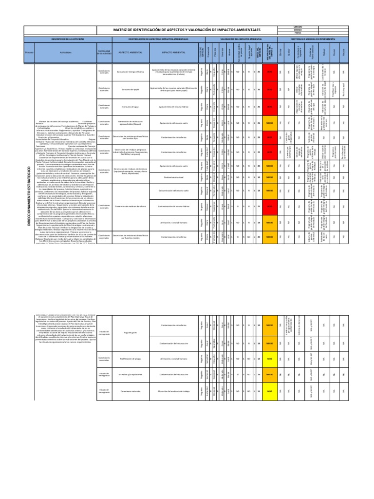 Matriz de aspectos e impactos ambientales. La plantilla de Matriz de Aspectos e Impactos Ambientales para ISO 14001 es una herramienta esencial en la gestión ambiental empresarial. Permite identificar y evaluar los aspectos ambientales de las operaciones de una organización, así como los impactos que generan en el entorno.