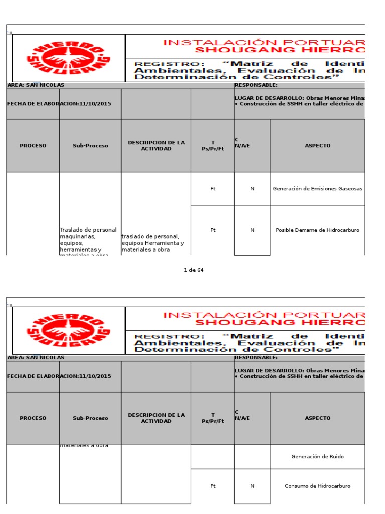 Matriz de Identificacion de Impacto Ambiental PDF Entorno natural Suelo