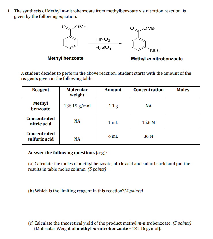 SOLVED Calculate the theoretical yield of methyl 3nitrobenzoate. First determine the limiting