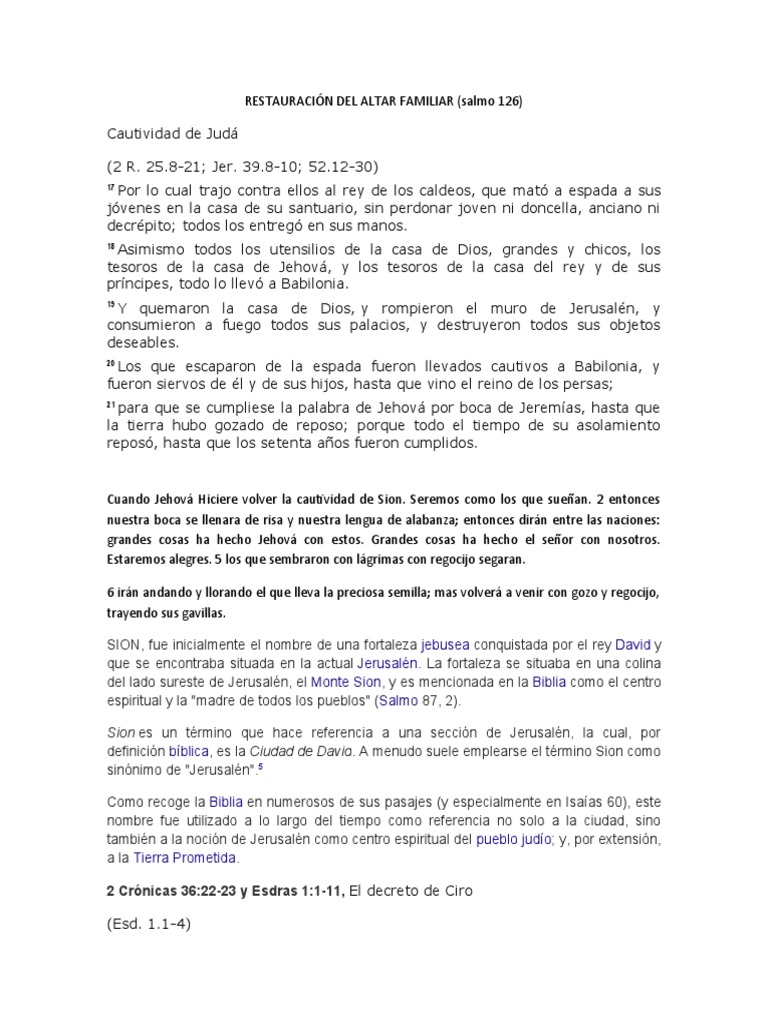Restauración Del Altar Familiar (Cautividad de Sion) PDF Contenido bíblico El antiguo