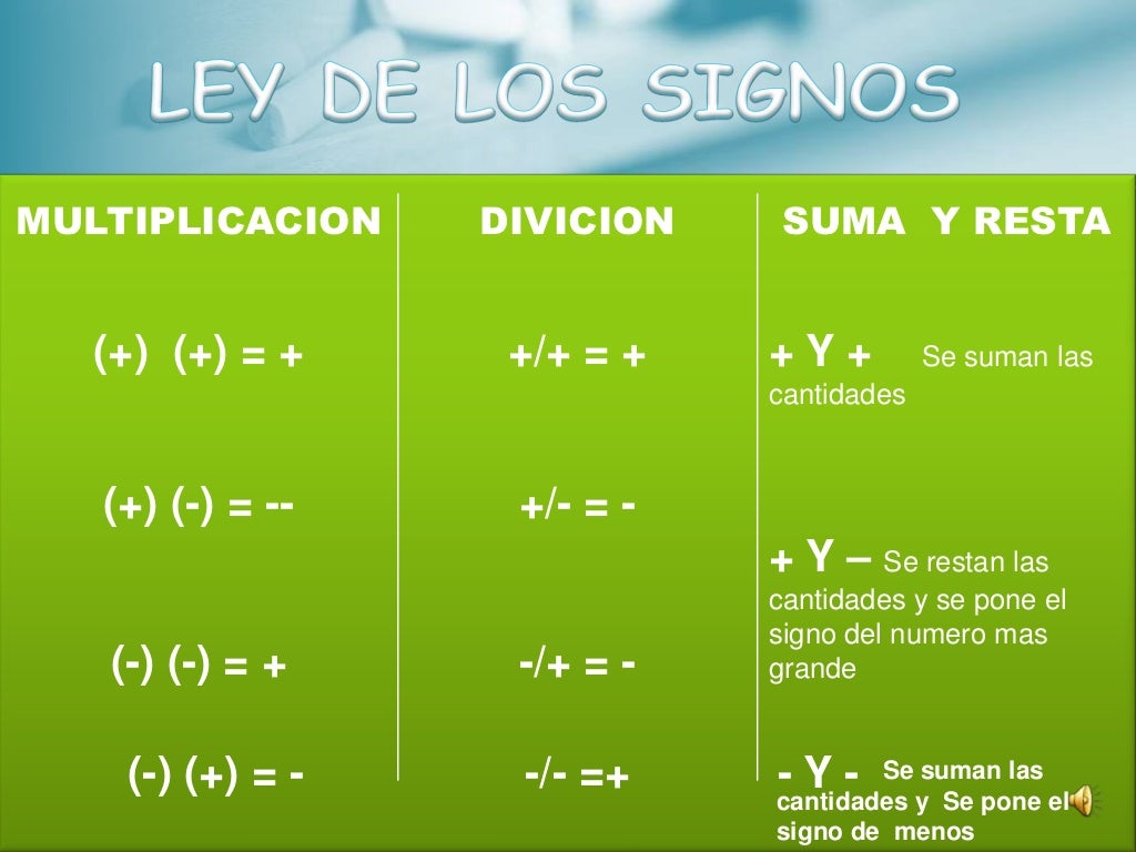Ley de los signos de matemática, suma, resta, multiplicación y división