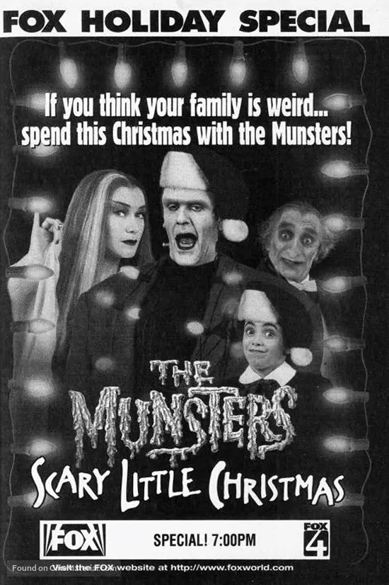 The Munsters' Scary Little Christmas is timeless and unique entertainment the whole family will enjoy again and again. It's a munsterpiece! Get ready for some holiday spirits as the first family of fright celebrates the season in the quirky and hilarious 2-hour TV film The Munsters' Scary Little Christmas! Eddie Munster (Bug Hall) misses.